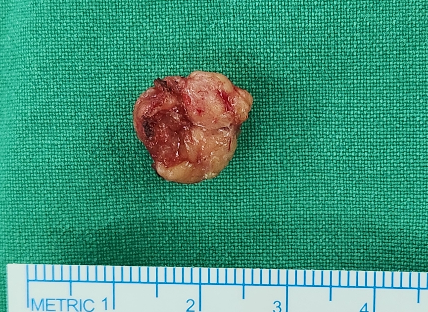 좌측 갑상선 종양이 크기가 커서 갑상선 좌엽 절제술 시행하여 동결절편검사로 확인하였고 악성 가능성은 낮아 중앙구역림프절곽청술 시행후 수술은 종료하였습니다.