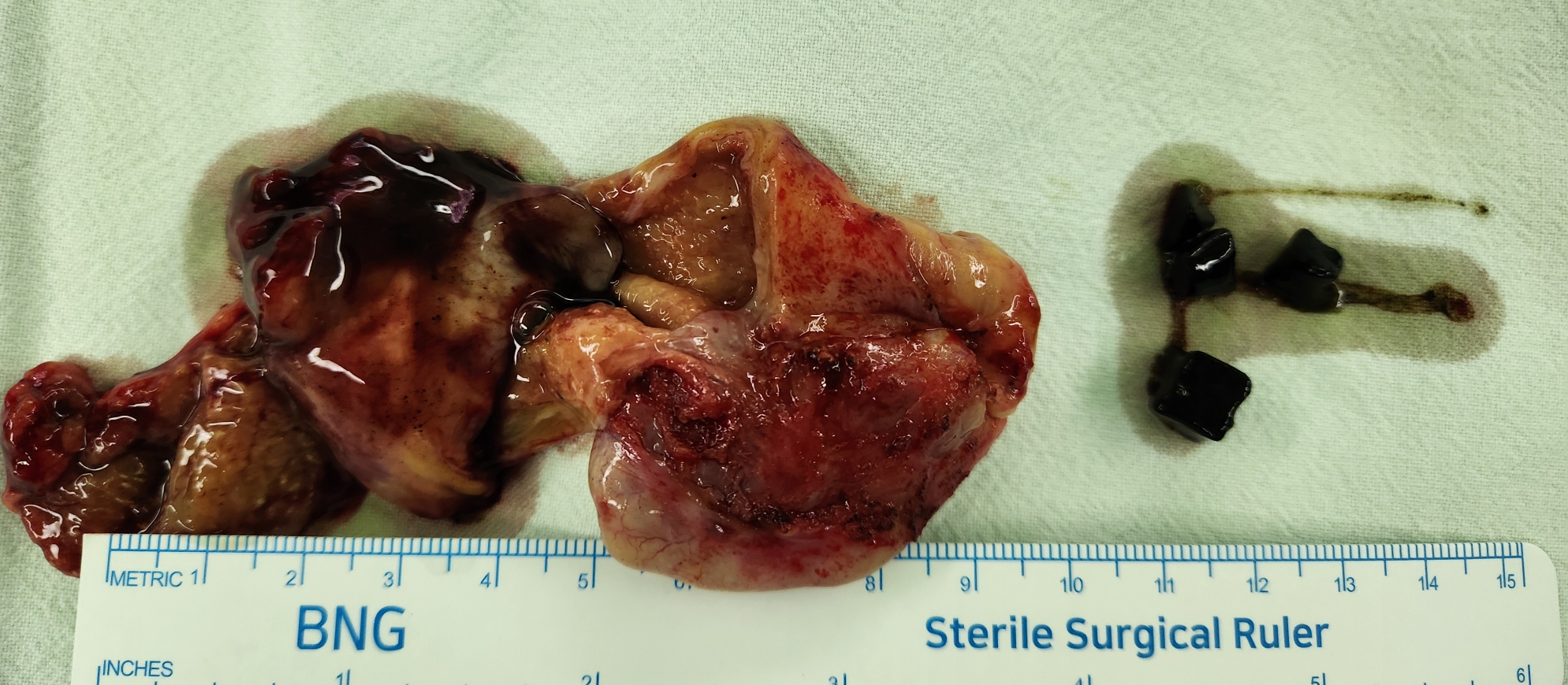 상복부통증으로 본원 응급실에서 총담관결석 및 급성 담낭염으로 진단후 소화기내과에서 어제 ERCP 시행하여 제거후 담낭절제 위해 제게 의뢰된 분입니다.