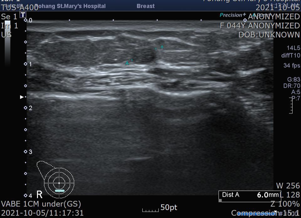 또 유방 병변의 크기가 작고, 띄엄띄엄 생길 수 있는 미세 석회화로 조직검사가 필요한 경우 맘모톰 시술이 흔히 사용될 수 있습니다.