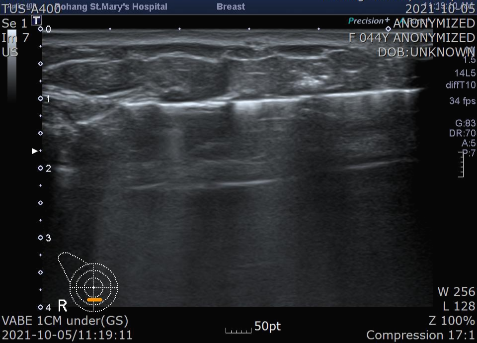진공 즉 음압을 걸어 조직을 바늘로 빨아들이면서 잘라내고 조직검사를 시행하는 특수한 방법입니다.