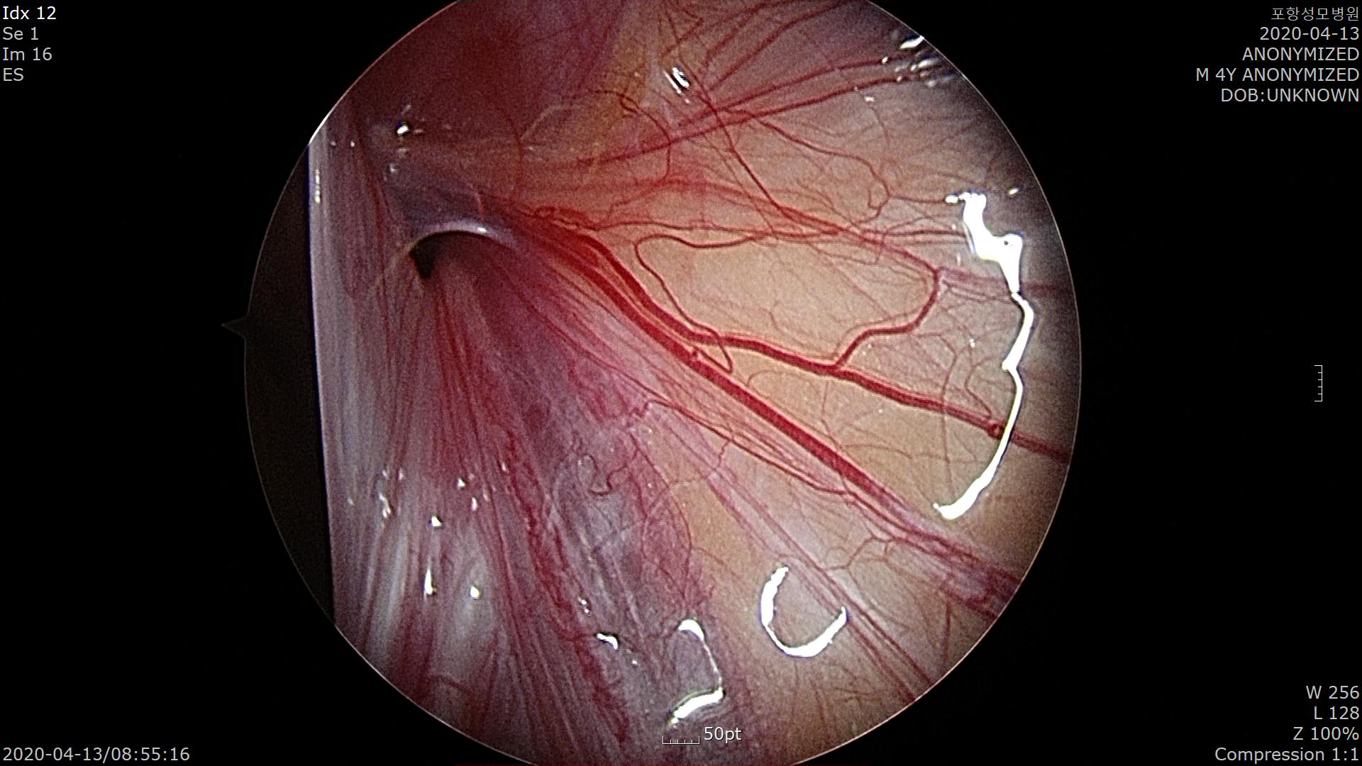 하지만 1년이 지나도 수종이 사라지지 않는 경우는 가늘지만 복강과 음낭과의 연결된 통로가 남아 있기 때문입니다.