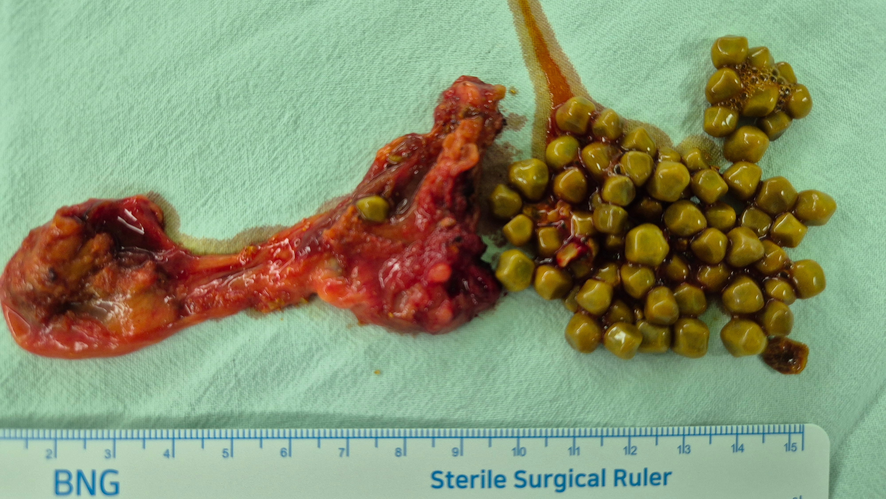 소화불량 및 복통으로 여성아이병원에서 초음파 시행후 다발성 담석으로 수술 위해 제 외래로 오셨던 분입니다.
