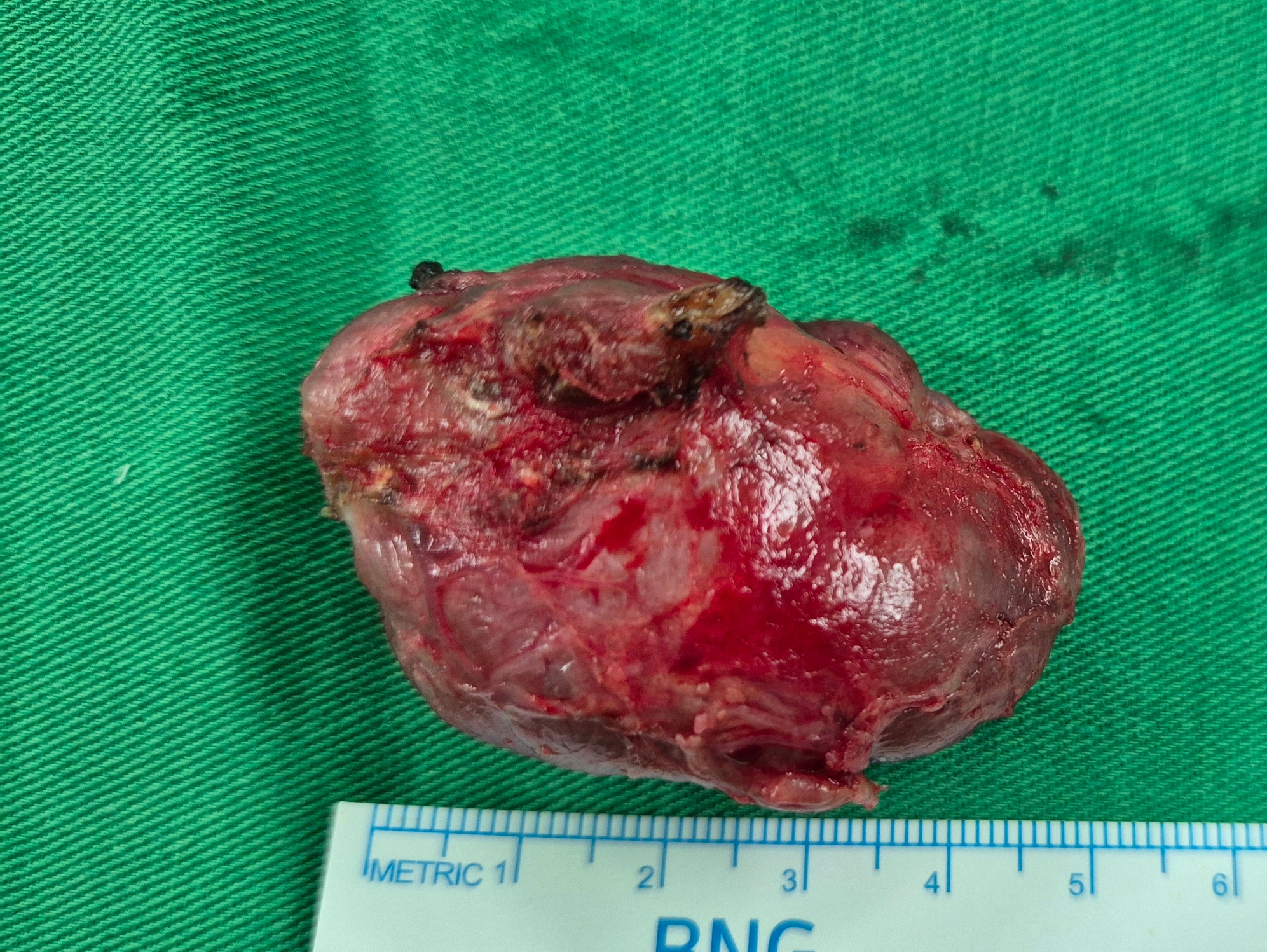 압박감 호소하여 갑상선 우엽절제를 했고 동결절편검사상 양성종양으로 확인되었습니다.