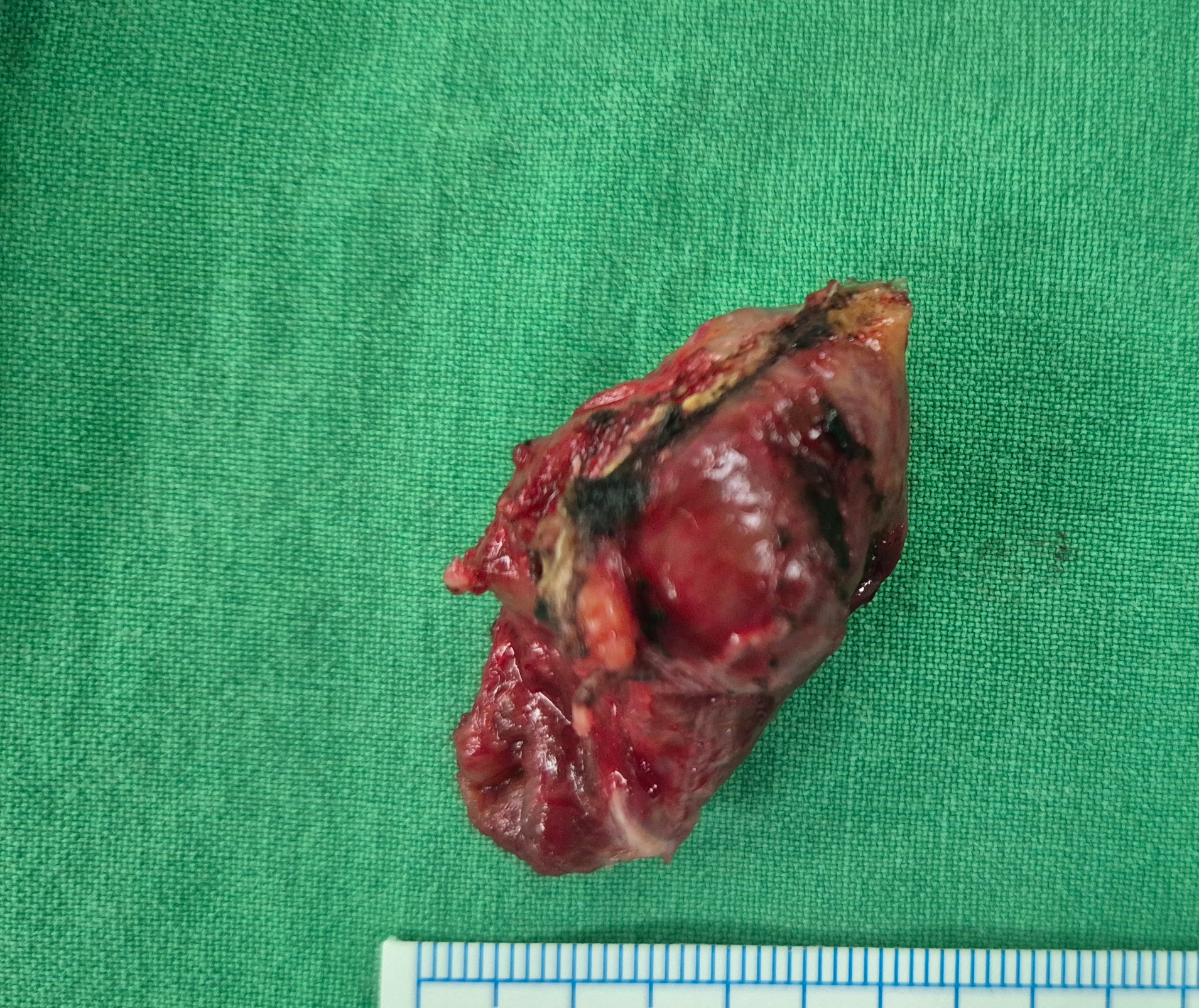 갑상선 우엽, 갑상선암으로 확인.