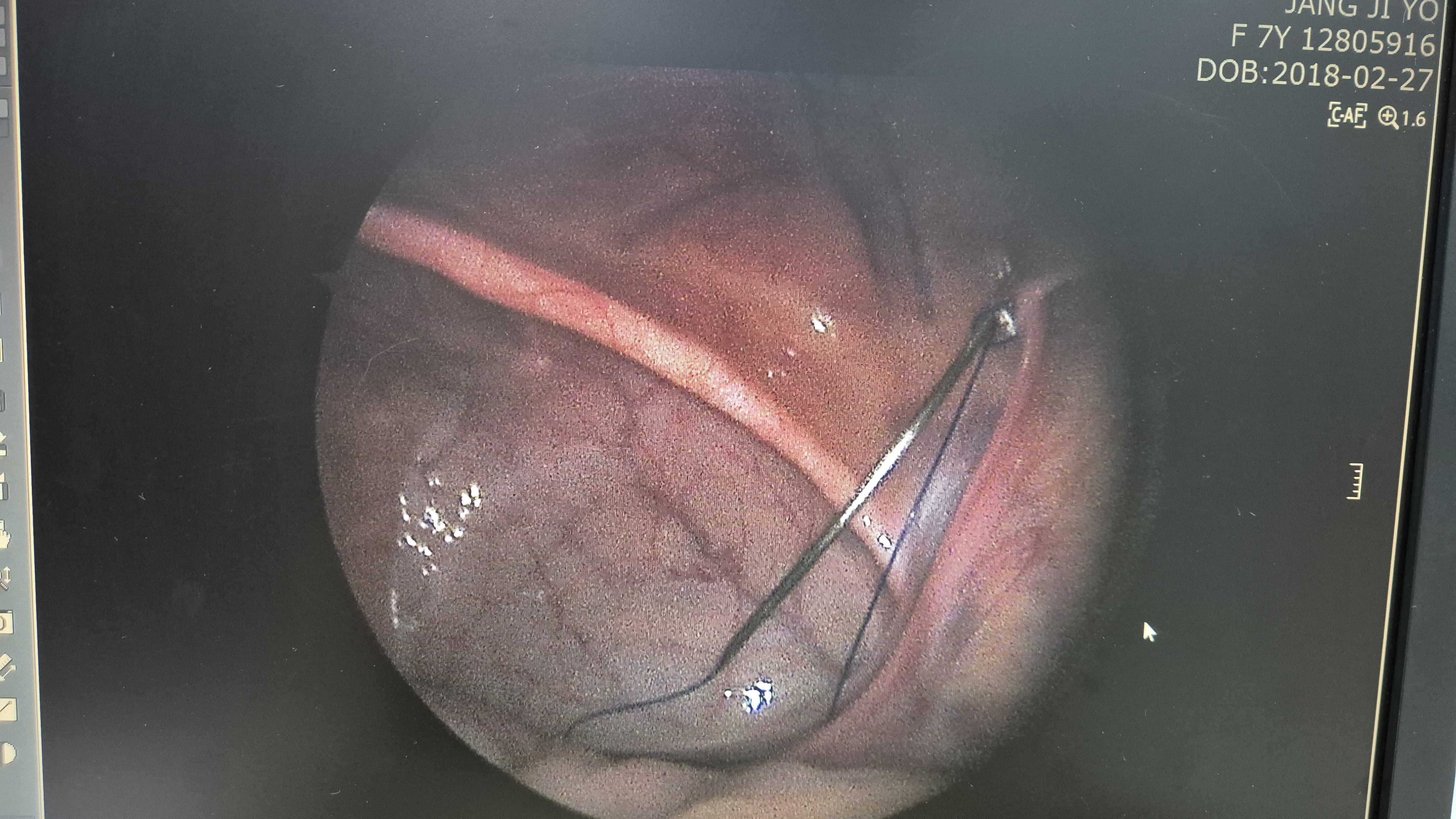 수술 중 우측 서혜부 탈장도 확인되어 함께 교정했습니다.