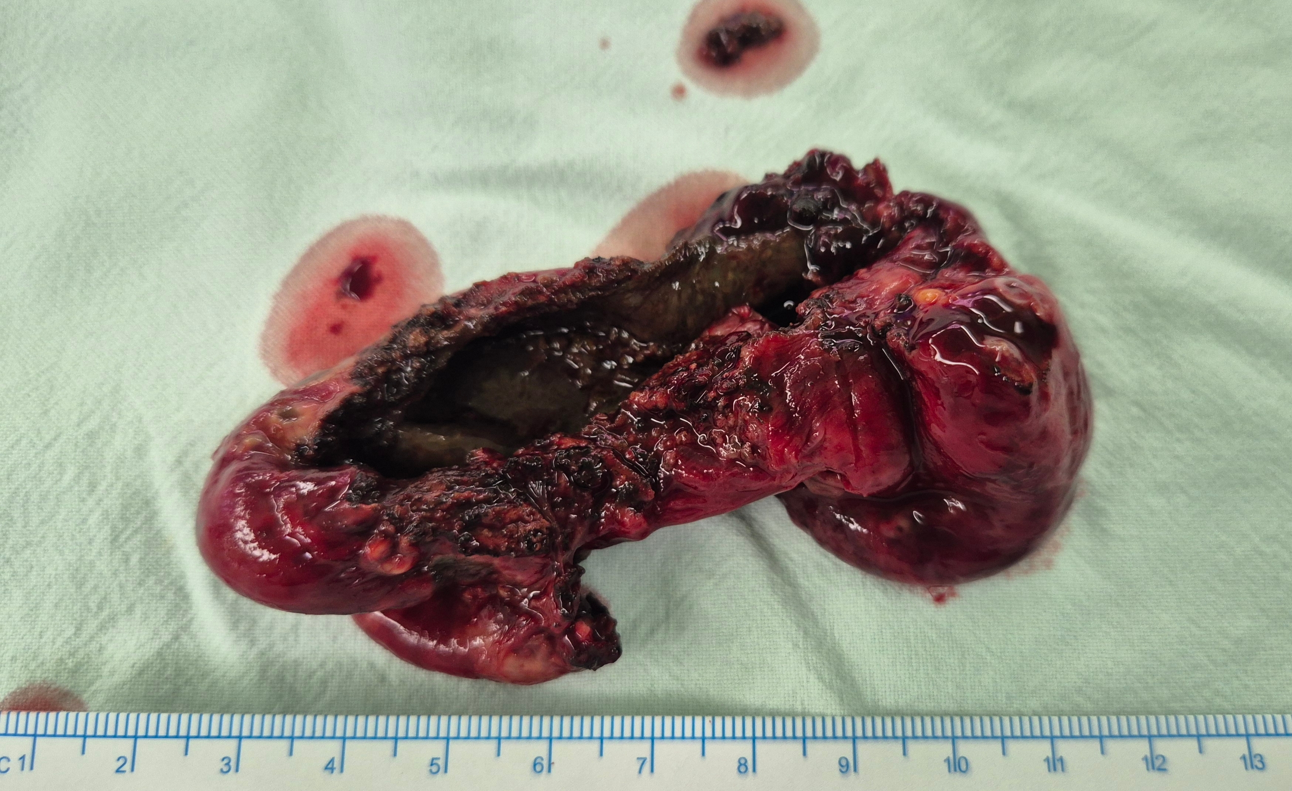 누출된 담즙으로 인해 심한 복통을일으킨 상황이었습니다.