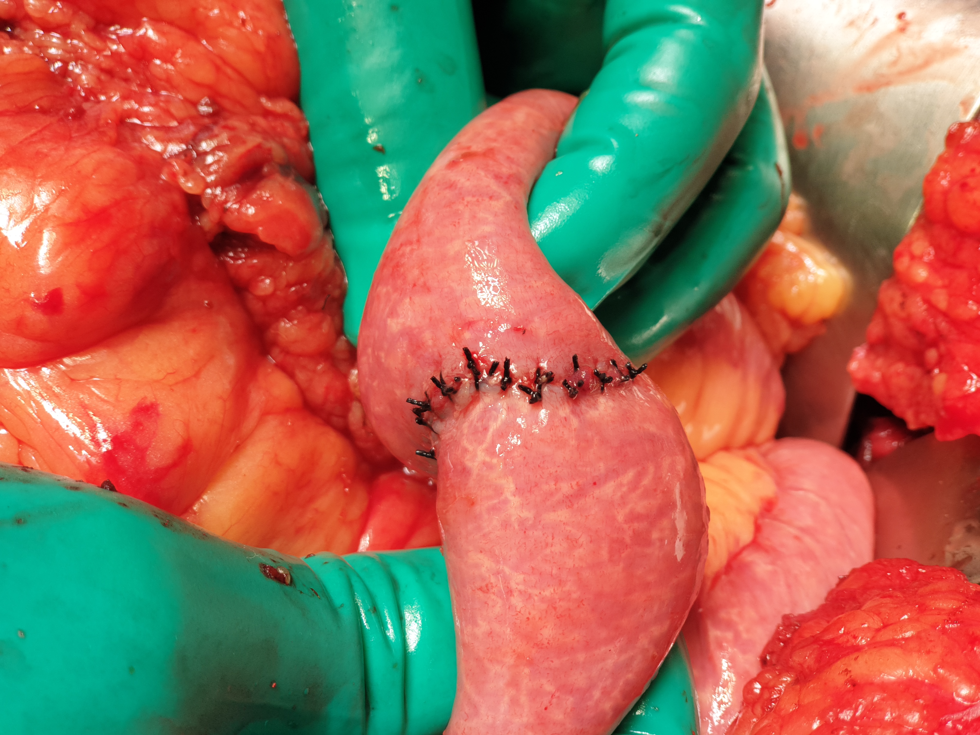 횡행결장 봉합이 끝나갑니다.