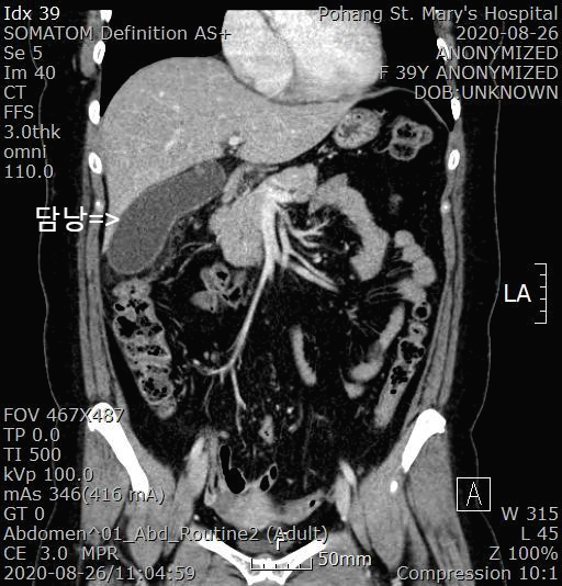오늘은 말씀드릴 분은 39세 여자분인데요. 급성 담석성 담낭염으로 복강경 담낭절제술을 시행한 분으로 수술 후에 다량의 담석이 발견되었던 환자분에 대해 말씀드리겠습니다.