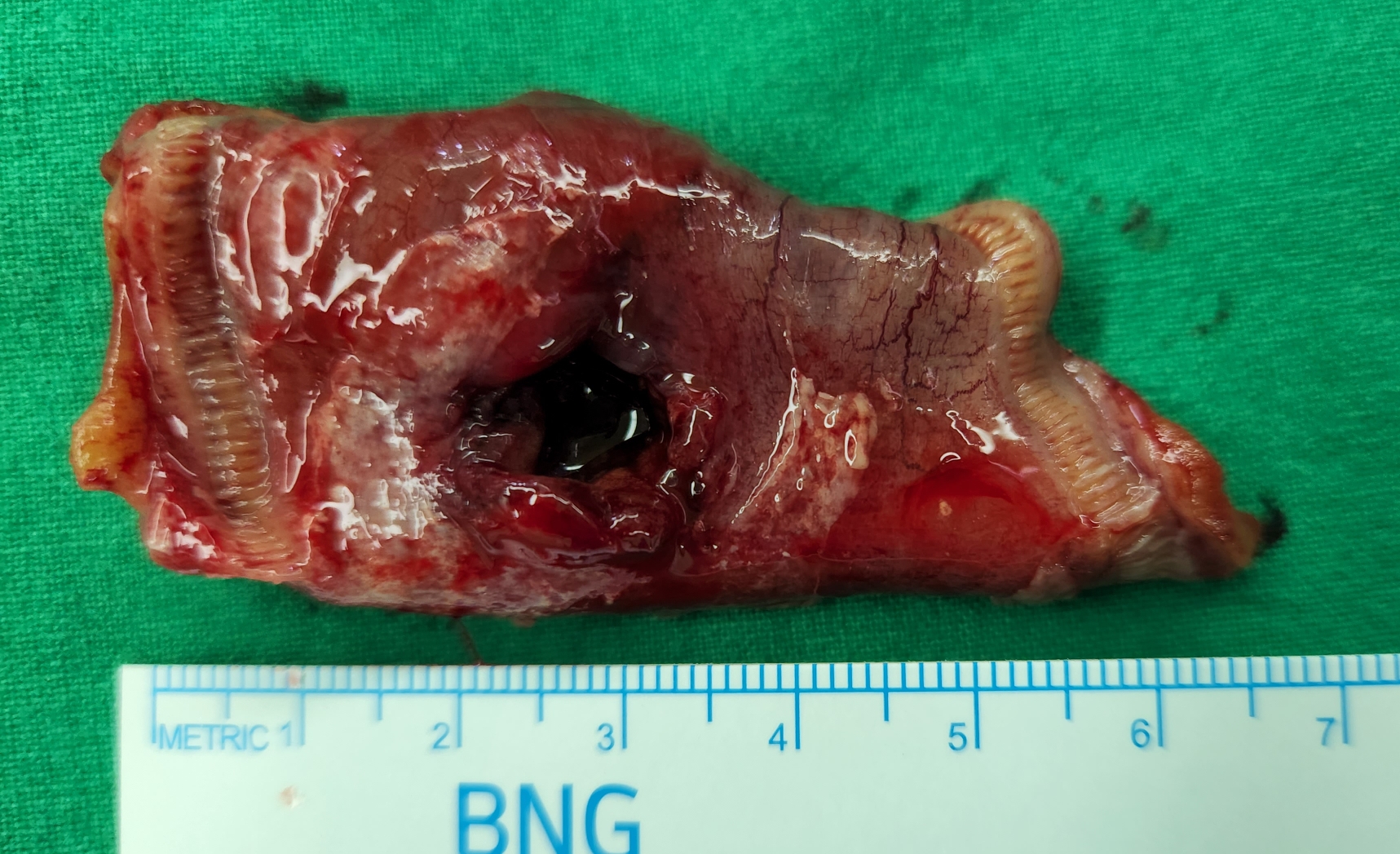천공이 있었던 소장을 잘라냈습니다.