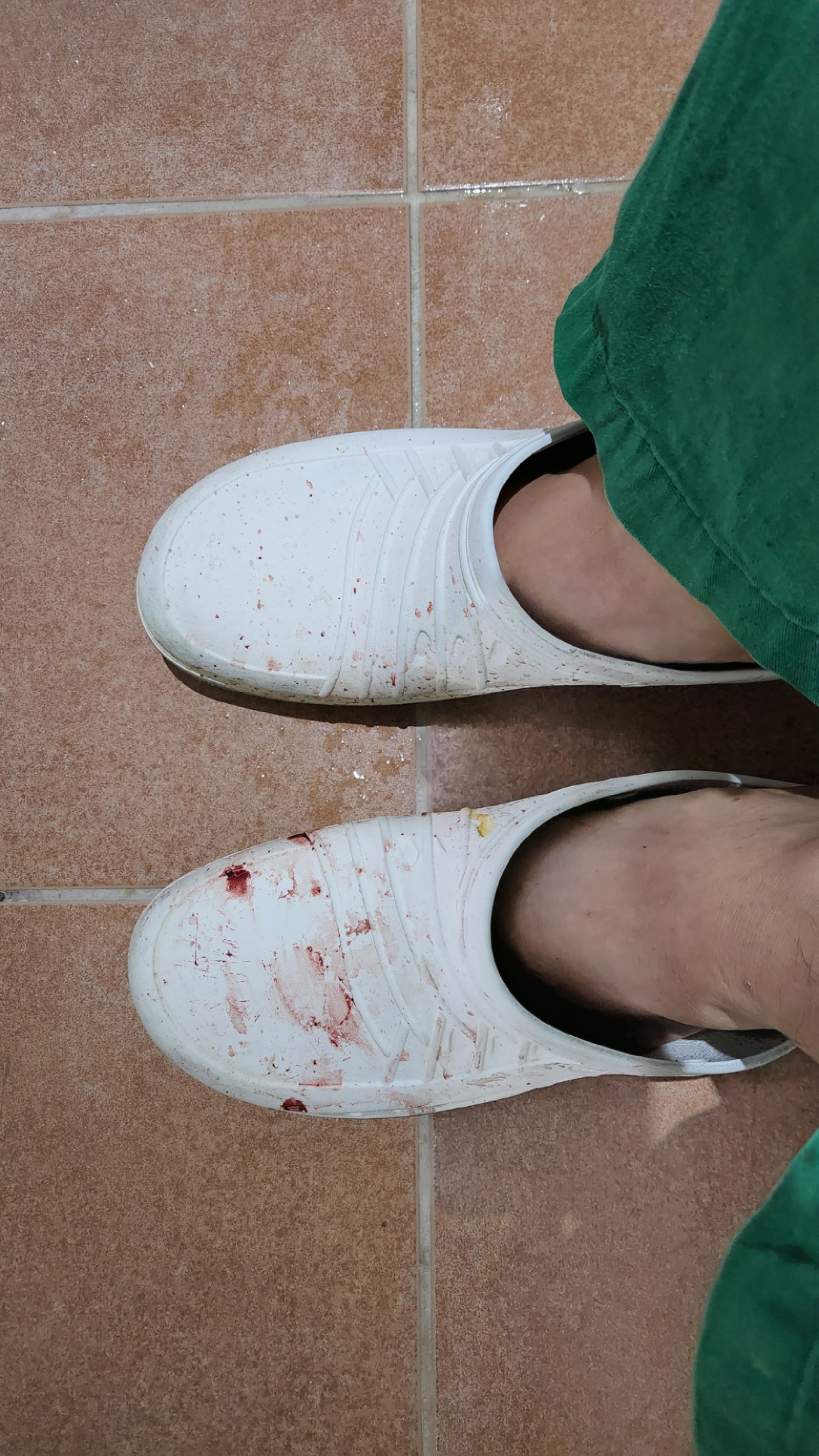 수술 끝나고 보니 환자 혈액이랑 오염물이 신발에 흥건히 묻었네요.