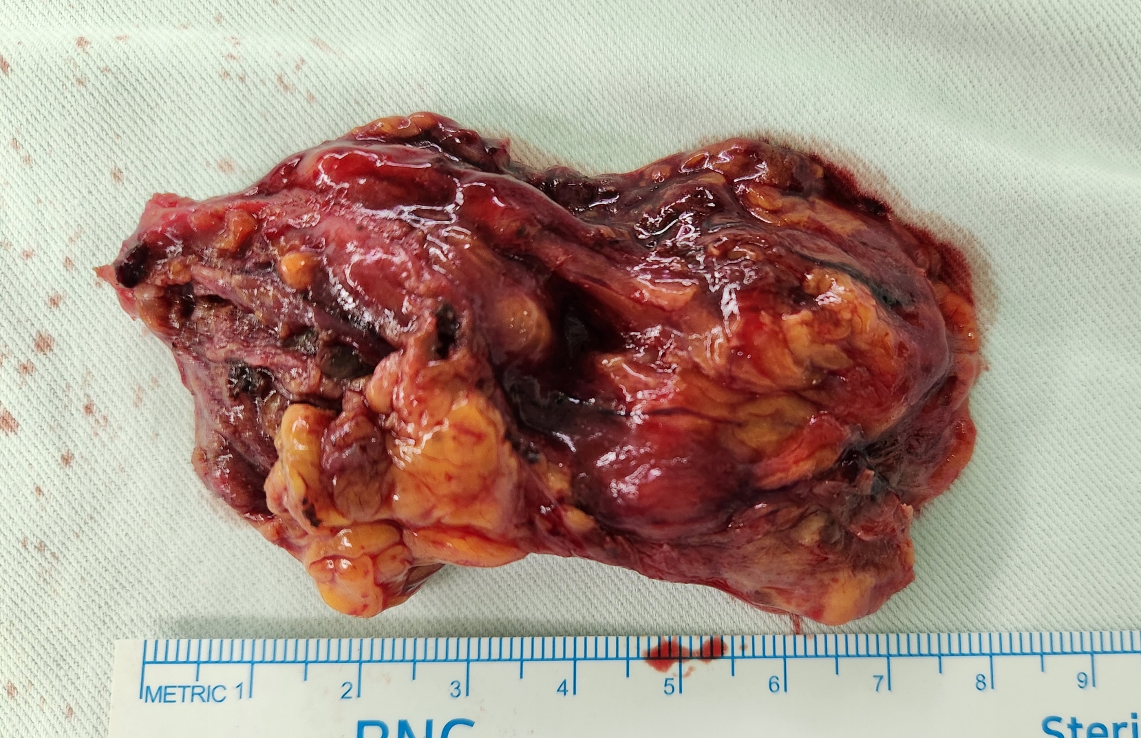 수술전 검사로 복부 CT를 확인해보니 담석 담낭염의에 췌장 뒤쪽으로 약 16cm 크기의 낭성 림프관종이 확인되어 방금 복강경 담낭절제술과 낭성 림프관종 절제술을 함께 시행했습니다.