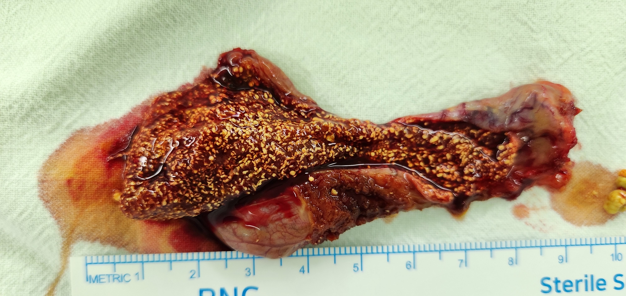 식후 속 불편감으로 동네 내과에서 시행한 초음파상 담석이 발견되어 제게 수술을 받으러 오셨던 분입니다.