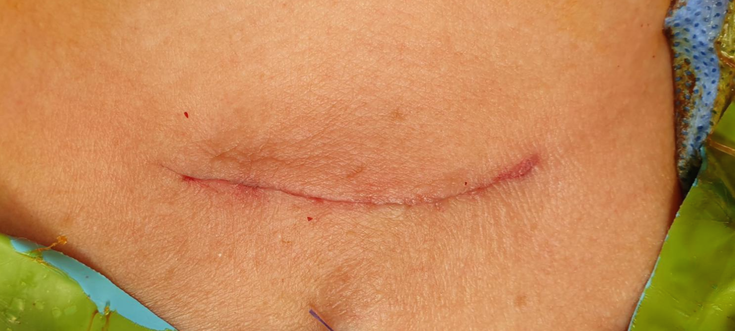 부갑상선 종양을 모두 제거하고 피부 봉합을 마쳤습니다.