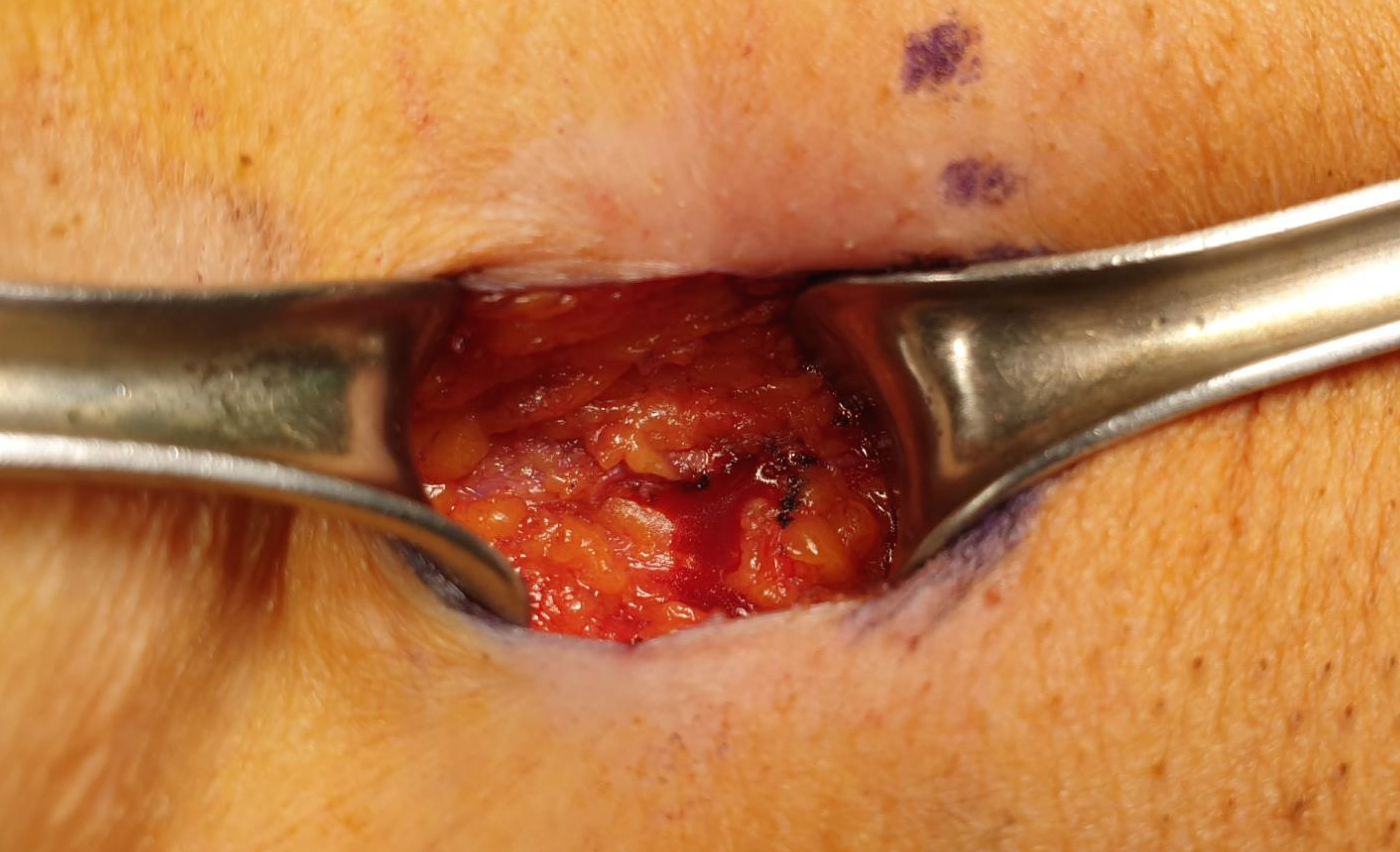 기존에 진공보조유방생검을 시행했던 위치를 수술중 초음파로 확인하고 충분한 경계면을 확보하여 유방 부분 절제를 시행합니다.