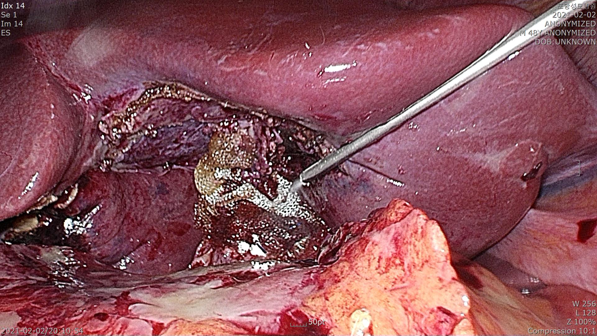담낭을 떼어낸 간 후벽에 출혈이 심해 지혈을 하는데 시간이 꽤 걸렸습니다.