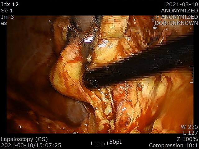 겨우 겨우 담낭관을 노출시키고 결찰합니다.