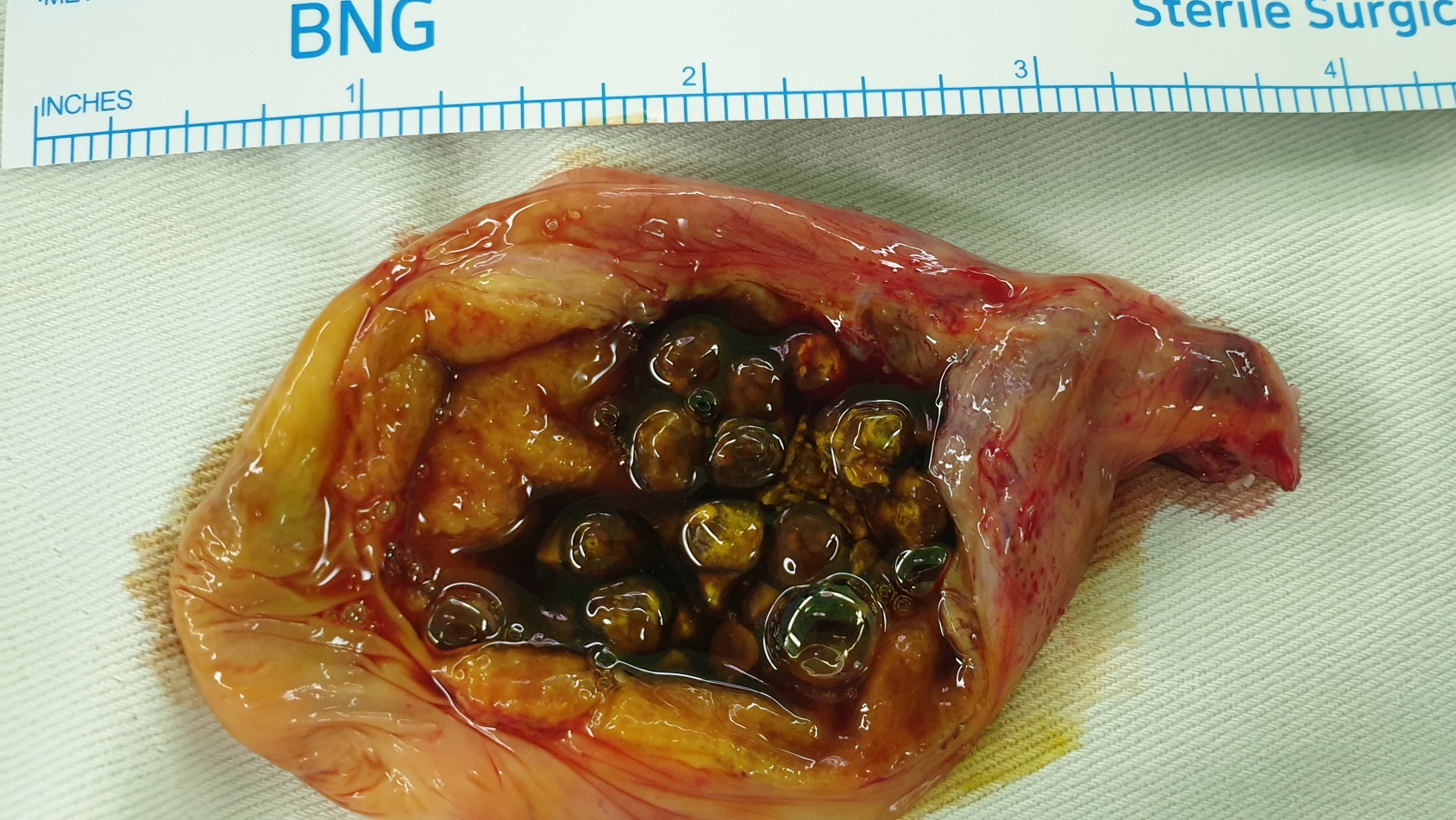 방금 복강경 담낭 절제 수술한 환자입니다.