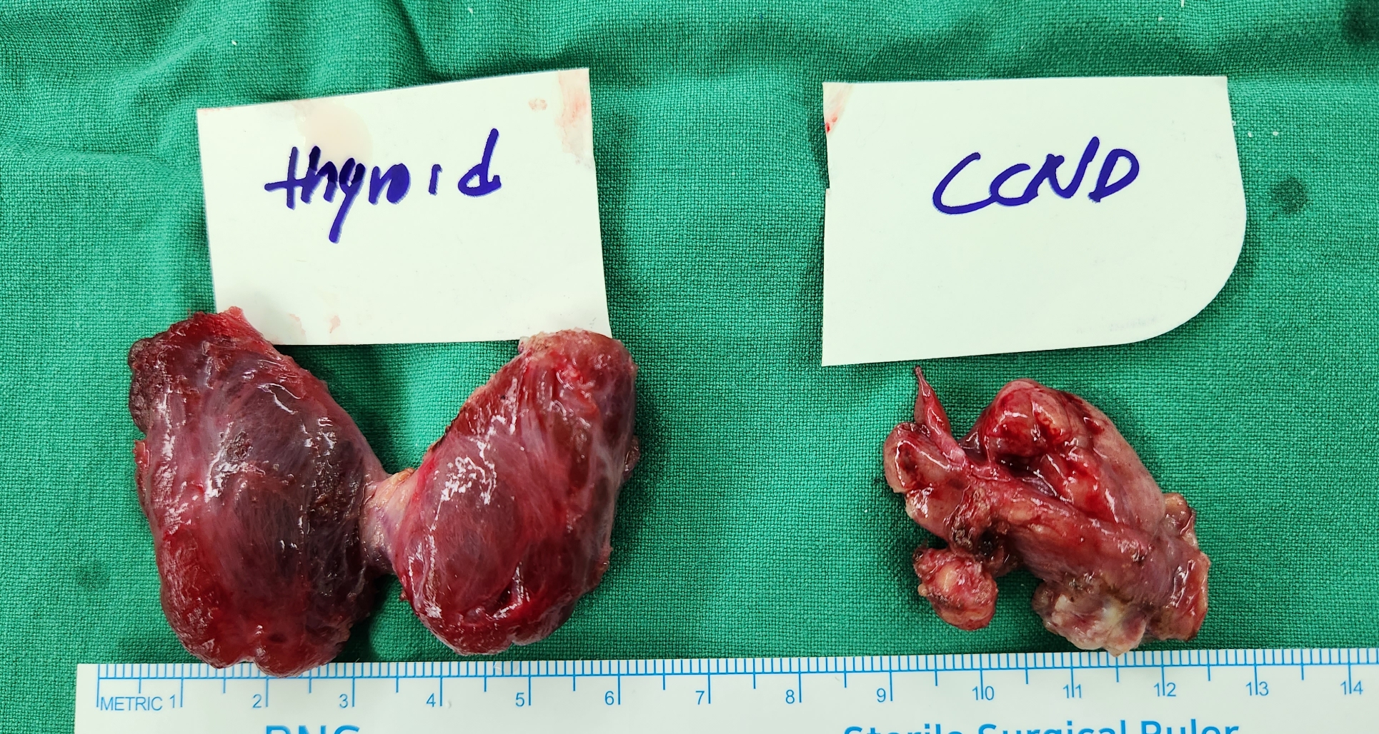 오늘 갑상선 전절제술 및 중앙구역림프절 곽청술을 시행했습니다.
